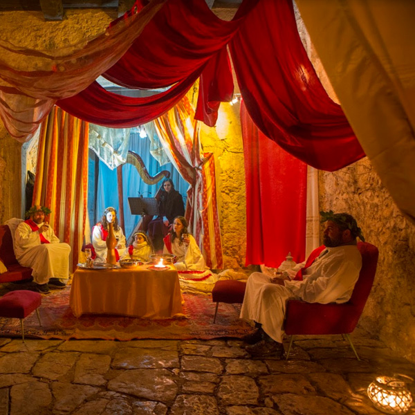 La peculiarità del nostro Presepe Vivente è la totale immedesimazione degli abitanti stessi, al punto tale da inchinarsi al passaggio della Sacra Famiglia e seguirla fino alla Grotta. Il borgo sarà la ricostruzione dell’antica Betlemme con abitazioni e personaggi dell’epoca ed ogni visitatore diverrà “visit-Attore”. Ad animare la serata lungo il percorso vi attenderanno innumerevoli sorprese.