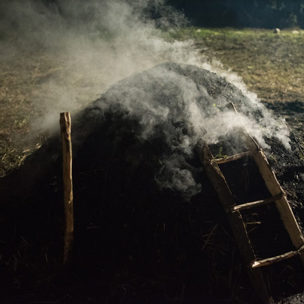 Il suo lavoro consisteva nel costruire il “Catuozzo”, ovvero dei mucchi di legna sistemati con un preciso criterio. Al centro veniva lasciato un vuoto che fungeva da camino alimentato più volte. Si ricopriva tutto di terra in modo da ardere lentamente. Dopo qualche settimana, tolta la terra, si raccoglieva il carbone.