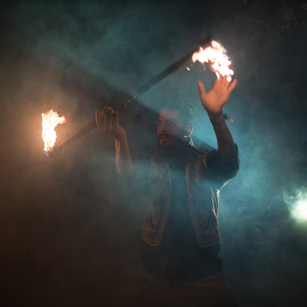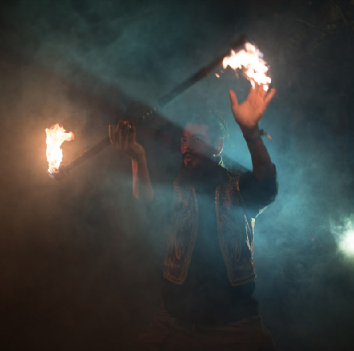 L’artista che sputa fuoco dalla bocca. Il suo numero è semplice ma estremamente pericoloso, tanto da essere considerata tra le più rischiose manipolazioni di fiamma. Consiste nel far uscire combustibile dalla bocca incendiandolo, creando così una grossa fiamma. Essa si può produrre con l’aiuto di liquidi infiammabili o polveri, a sua volta incendiati con una torcia.