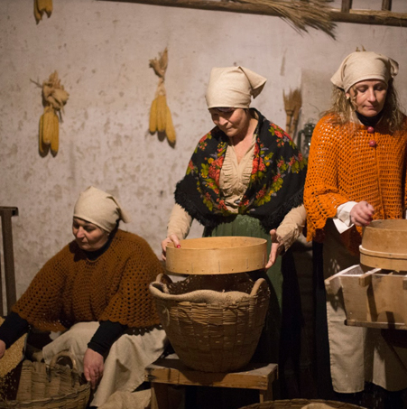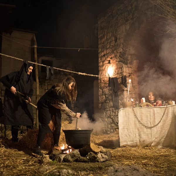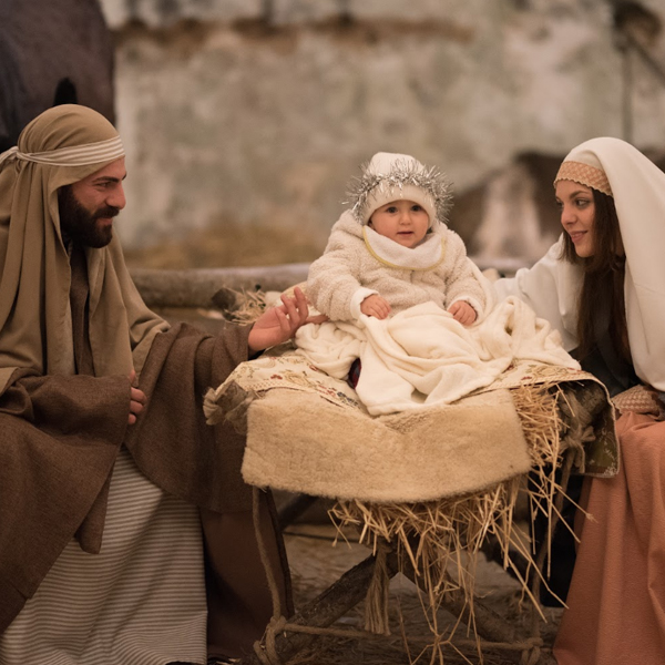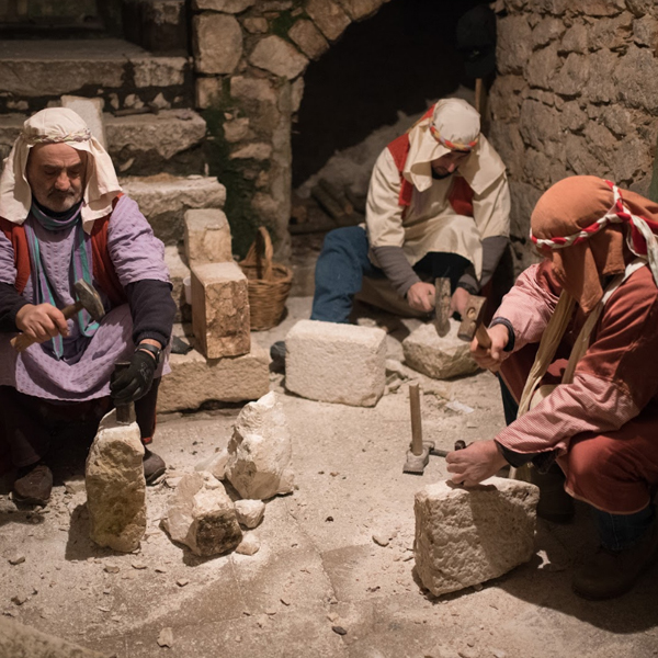 la Natività viene ricreata in uno degli angoli più suggestivi del borgo, cercando di rispettare il più fedelmente possibile la nascita del bambino. Affinché tutto ciò sia possibile, nella grotta ci sarà una reale mangiatoia riscaldata dalla presenza del bue e l’asinello, oltre alla sacra famiglia.